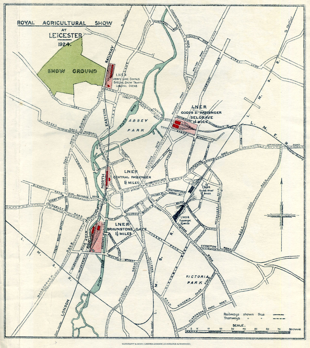 For many years the annual Royal Agricultural Show was held at a different location each year. It was held in Leicester in the years 1868, 1896, and 1924. The show ground for the 1924 event was near to the ex-GCR Abbey Lane Sidings, as shown in the map below, which were used in transporting equipment and exhibits.