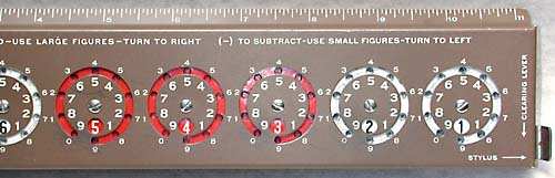 For subtraction the stylus is placed in the hole against the appropriate small outer number and dialed