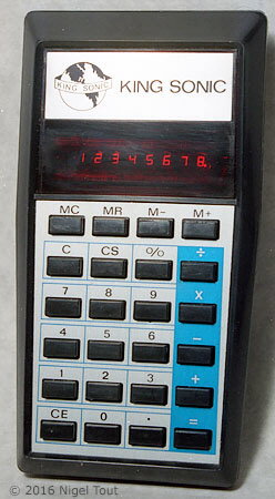 King Sonic (model number unknown, "Standard type 1" calculator). Featured calculator.