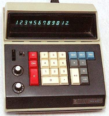 Display is 12 digits, separate green vacuum-fluorescent tubes.