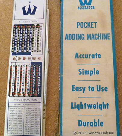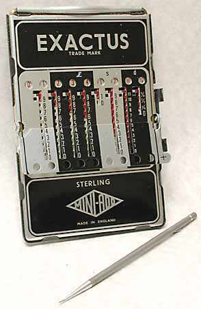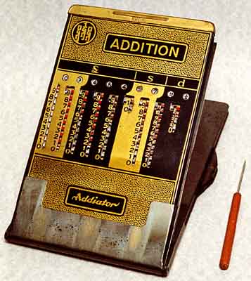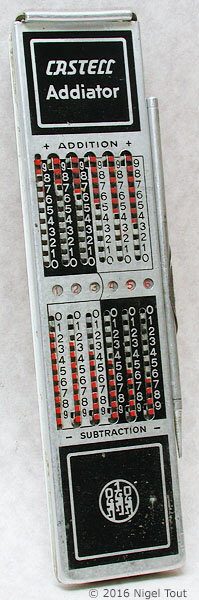 Pocket Adding Machine, sterling currency "Addiator", 5 £ decades, 86x128mm/3.4x5",