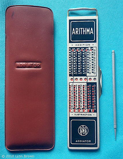 Addiator Arithma (with pouch and stylus), decimal model, 6 decades.