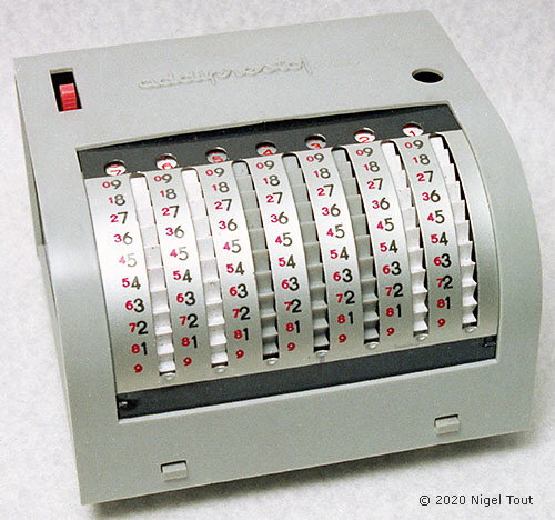 Addometer Sterling currency model, dial calculator. Featured calculator.