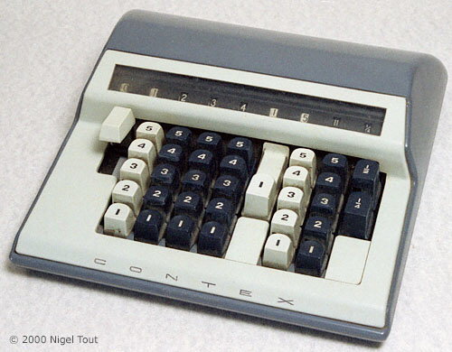 Contex, Sterling currency, abbreviated-keyboard adder, Denmark. Featured calculator.