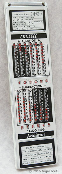 rear, combined 'Addiator' and slide-rule, c1960s, Hong Kong. Featured calculator.