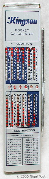 Kingson Pocket Calculator, Sterling currency 'Addiator', c1960s, Hong Kong. Featured calculator.