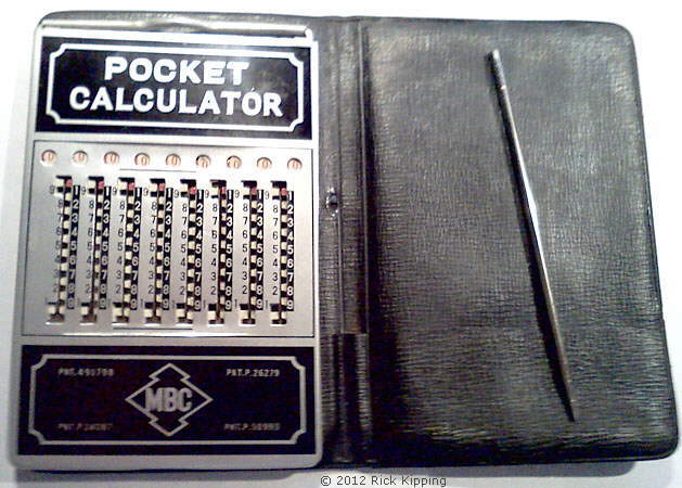 slide-rule, 1920s to 1970s. Displayed here since it was a competitor to the early hand-held electronic calculators. Featured calculator
