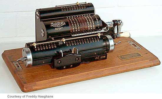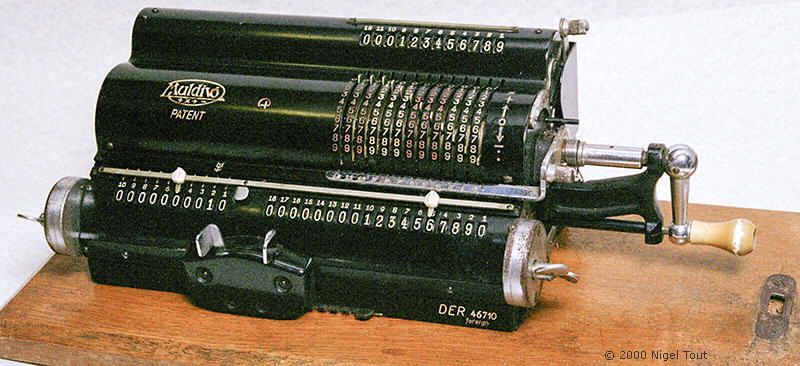 TIM (Time Is Money) stepped-drum calculator, early model, with number setting by sliders.