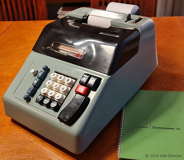 Olivetti Electrosumma 22, electrically driven, 10-key add-lister, Italy, 1950s. Featured calculator.