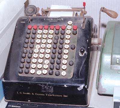 Smith Corona model unknown, hand-operated, full-keyboard add-lister. Featured calculator.