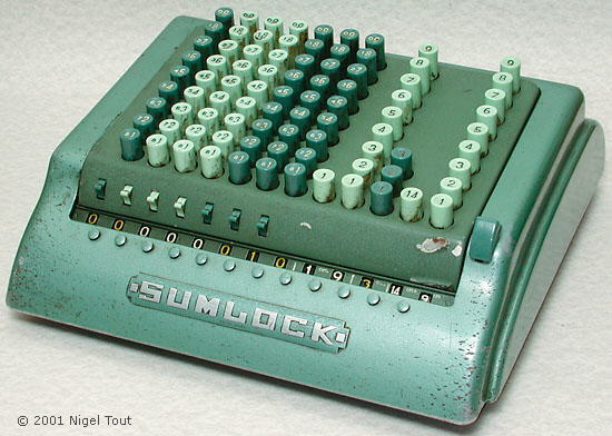 Sumlock 912/S, Sterling currency 'comptometer', 1950s/1960s. Featured calculator.