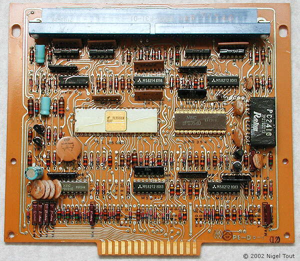 The logic circuit board with the ceramic Fairchild SL35085X and the NEC uPD354D surrounded by dozens of components, including SSI (Small-Scale Integration) ICs, resistors, diodes and capacitors.