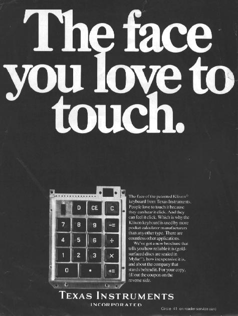 "The face of the patented Klixon keyboard from Texas Instruments. People love to touch it because they can hear it click. And they can feel it